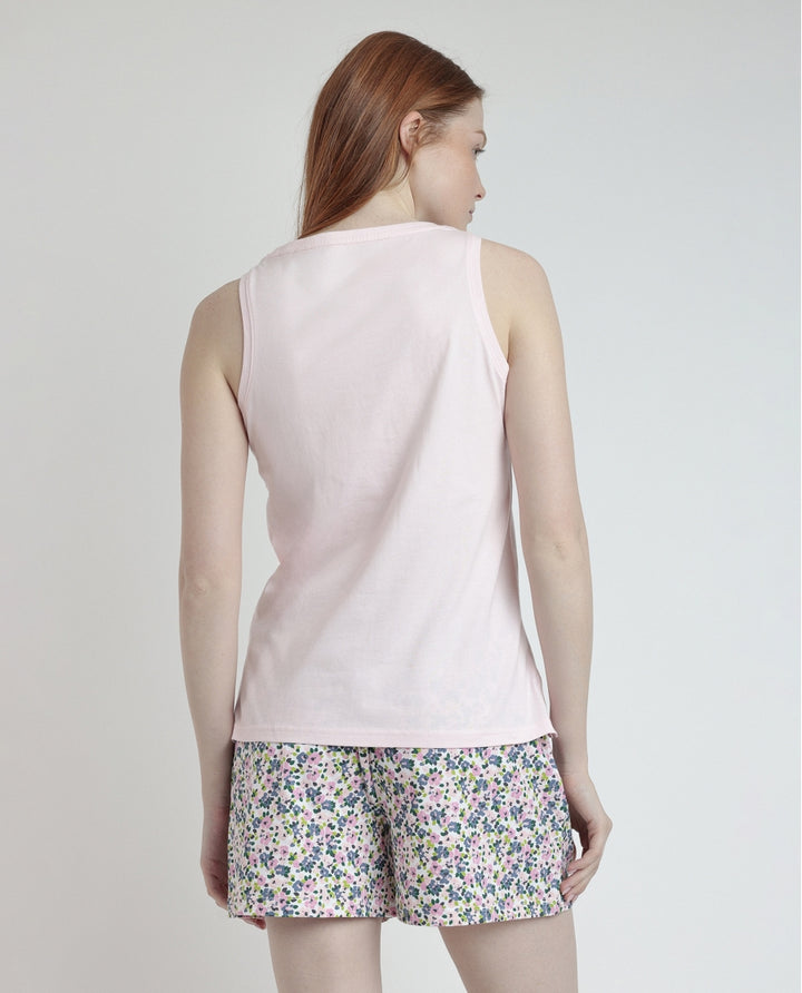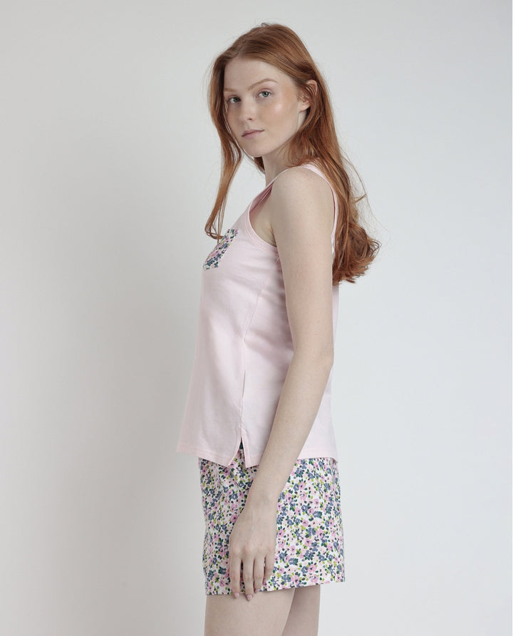 * Pigiama in maglia di cotone, senza maniche, colletto con abbottonatura e pantaloncini.