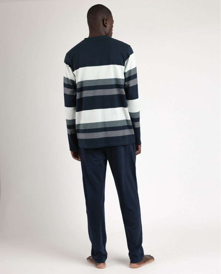 * Pigiama in maglia di cotone, manica lunga, colletto con abbottonatura e pantaloni lunghi.