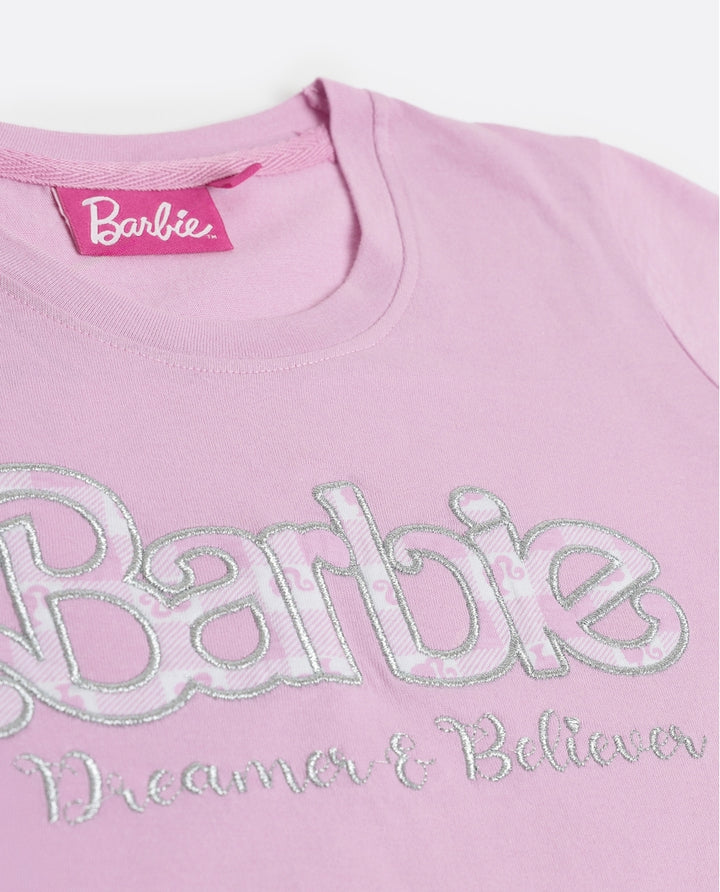 * T-shirt in maglia, con dettagli glitter, personalizzata dal brand Barbie.