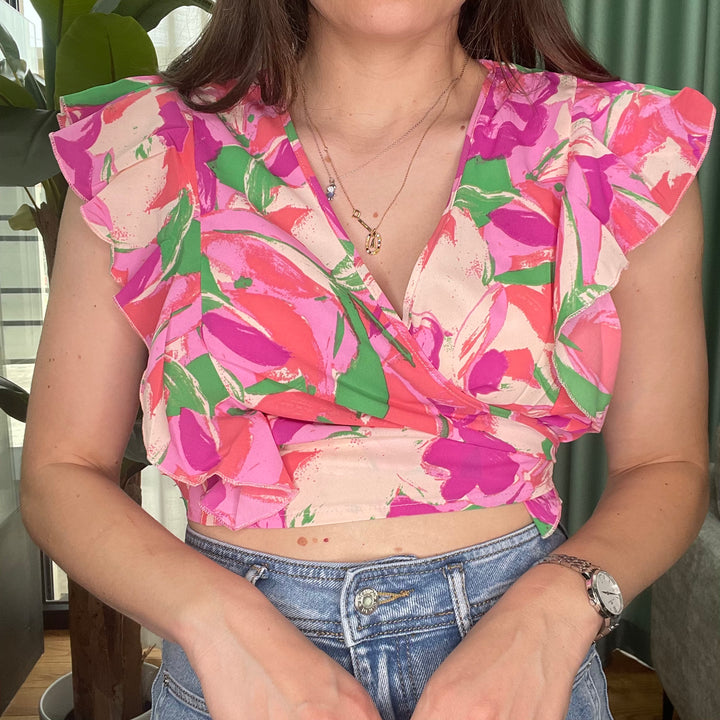 Blusa a incrocio.Si può legare sia dietro che sul davanti.
