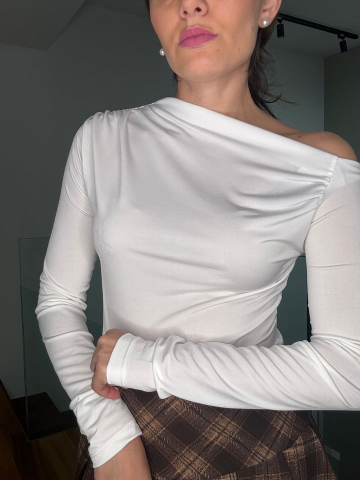 Body asimmetrico, drappeggiato leggermente, in viscosa, veste fino ad una 46.