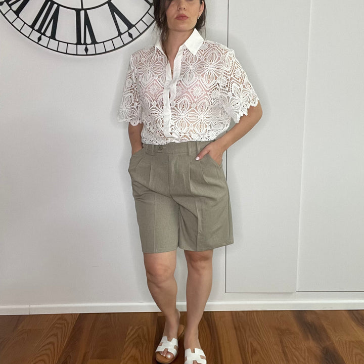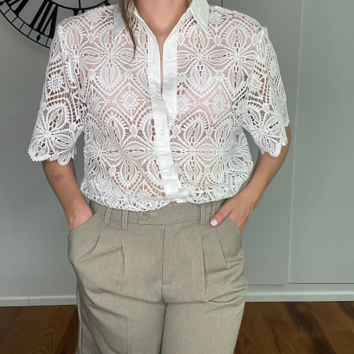 Camicia in pizzo mezza manica,vestibilità regolare.