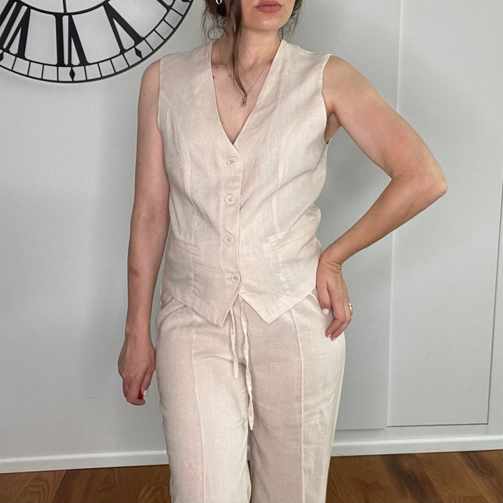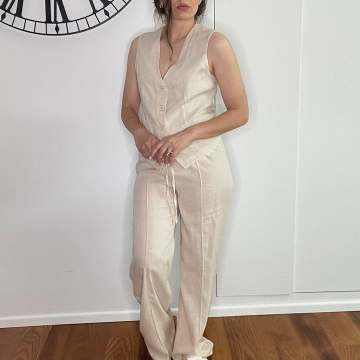 Coordinato in sibilino composto da gilet e pantalone con elastico.Veste fino a una taglia 46.