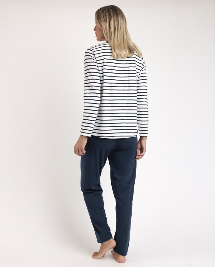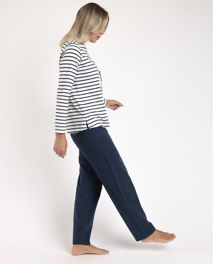 * Pigiama in maglia di cotone, manica lunga, scollo rotondo e pantaloni lunghi.