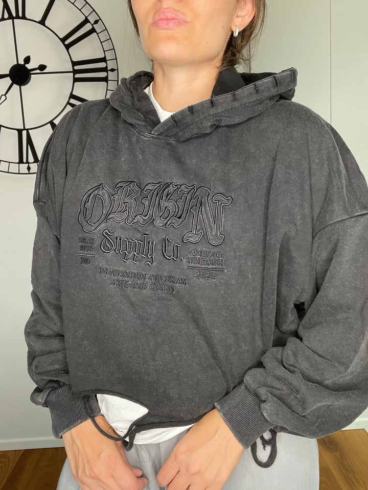 Felpa modello crop effetto rovinato.