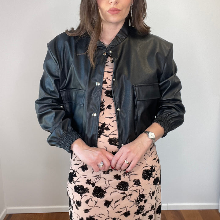Boomber in ecopelle con bottoni a pressione e elastico con fondo e vicino ai polsi
