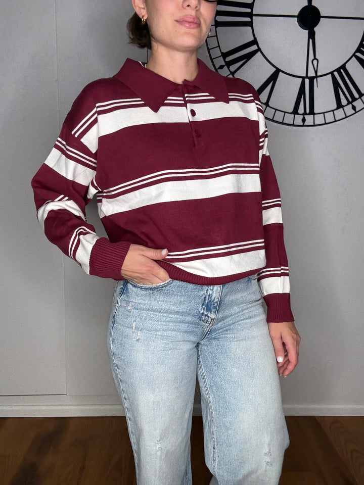 MAGLIA A POLO CON RIGHE BORGOGNA
