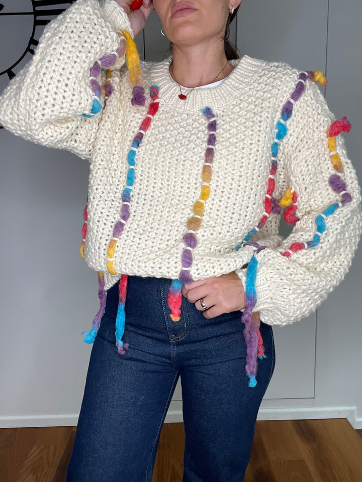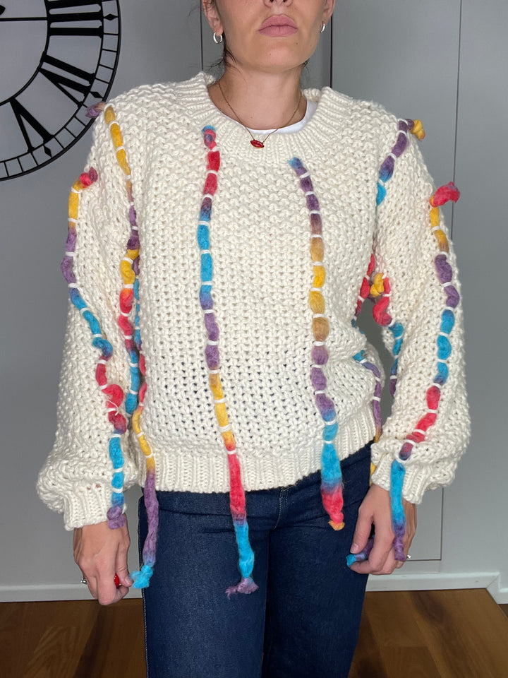 Maglione a maglia larga con intreccio colorato.
