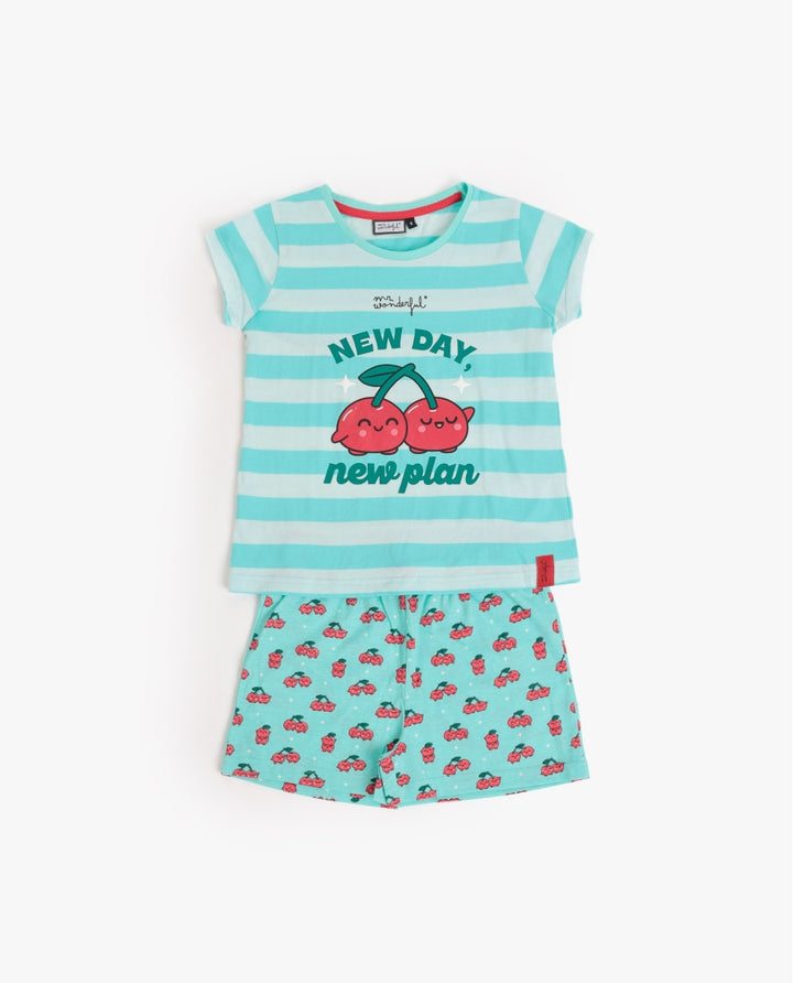 * Pigiama in maglia di cotone, con maniche corte, scollo rotondo e pantaloncini.