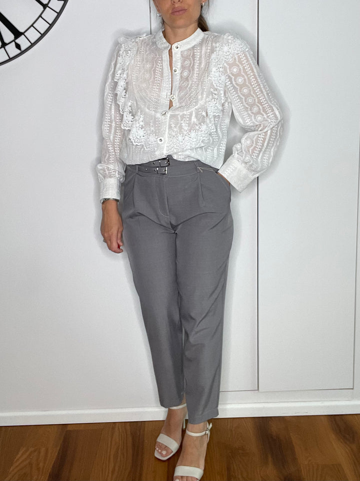Pantalone con cinturino fisso con doppie cinture incluse.