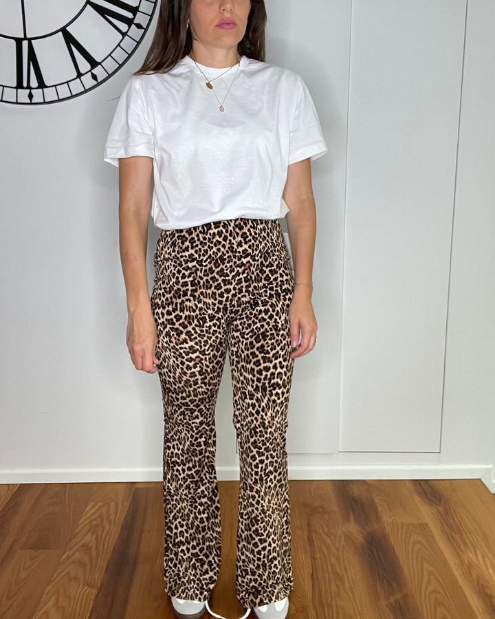 Pantalone animalier in lycra modello a zampa.