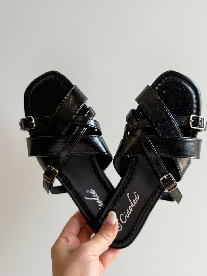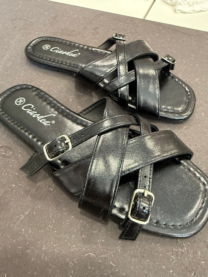 PANTOFOLA EFFETTO PELLE CON CINTURINI.CALZATA REGOLARE