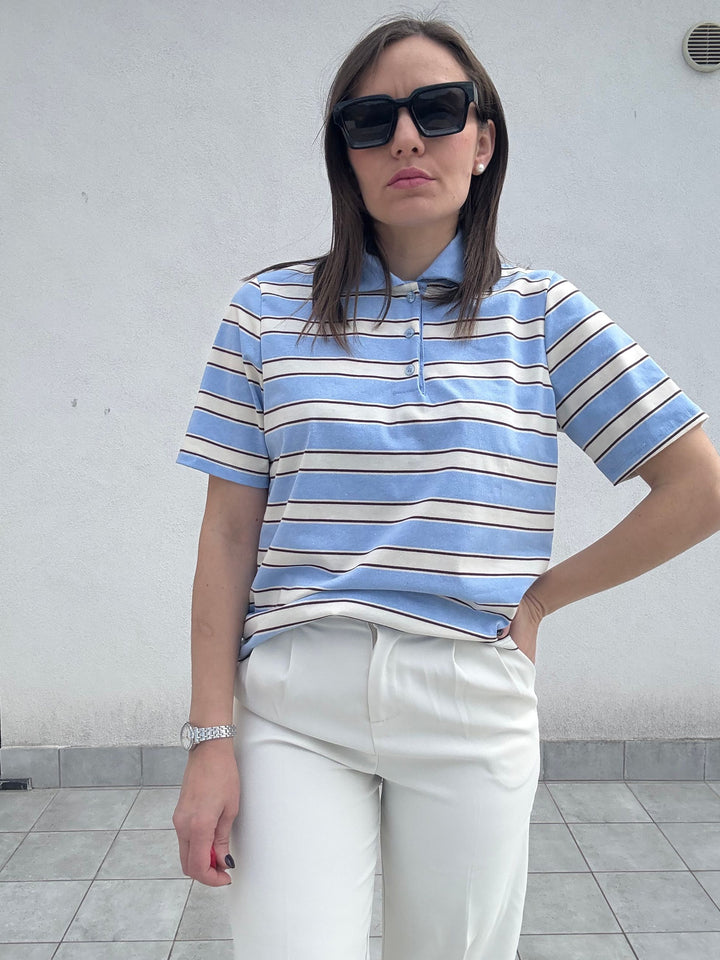 T-SHIRT A RIGHE CON COLLETTO IN COTONE.VESTE FINO A UNA TAGLIA 44-46