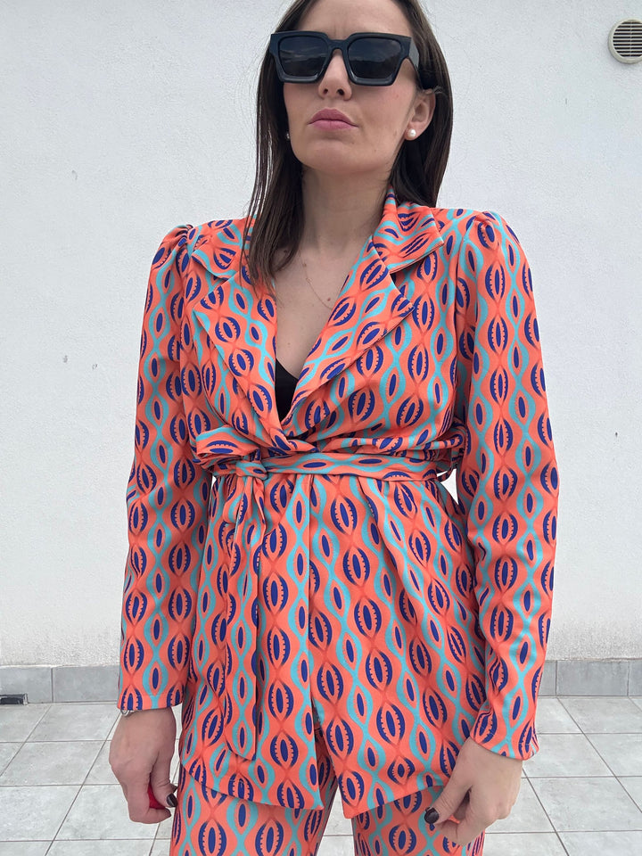 TAILLEUR COMPOSTO DA GIACCA CON FUSCIACCA IN VITA REGOLABILE E PANTALONE A VITA ALTA CON ELASTICO,MODELLO A ZAMPA