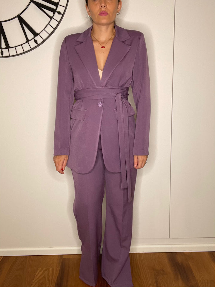 TAILLEUR TITTY 50575 Tailleur composto da giacca con fusciacca,modello che copre il sedere e pantaloni con elastico in vita. Veste fino a una taglia 46.